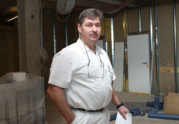 Vier Diplomingenieure, zwei Facharbeiter und eine Sachbearbeiterin - das ist die Mannschaft, der Rüdiger Steinbrück als Leiter vorsteht. Am Nordhäuser Südharz-Krankenhaus arbeitet der studierte Medizintechniker schon 30 Jahre, er hat alle Veränderungen mit erlebt, kennt jeden Winkel, nahezu jedes Rohr, fast jedes Gerät.
