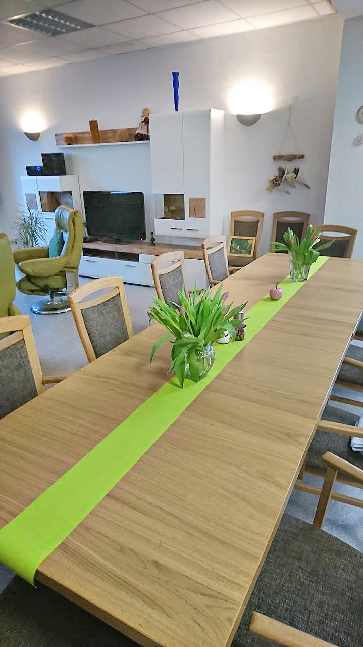 Täglich bieten wir Ihnen ein vielseitiges und individuelles Programm mit wechselnden Angeboten. Dazu zählen Bewegungsübungen, Spaziergänge, Gedächtnistraining, kreatives Gestalten, gemeinsame Spiele, Kochen und Backen. Hier finden Sie Zeit für Gemeinschaft, Gespräche, aber auch für Ruhe und Erholung.