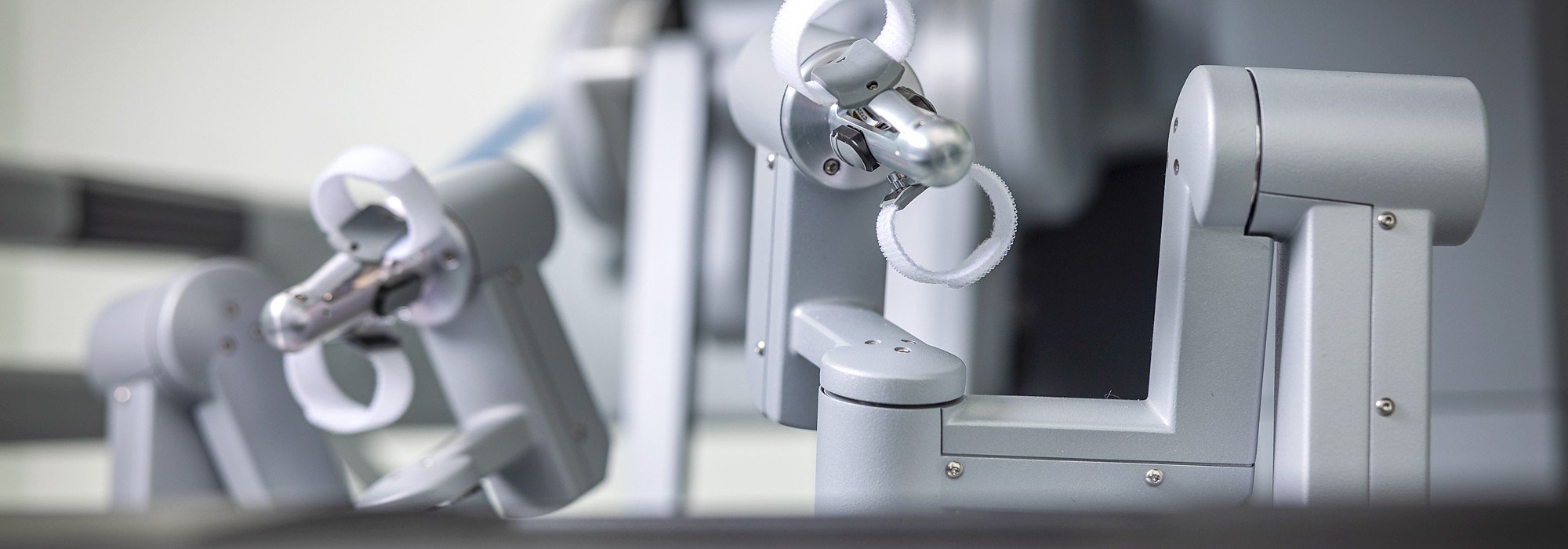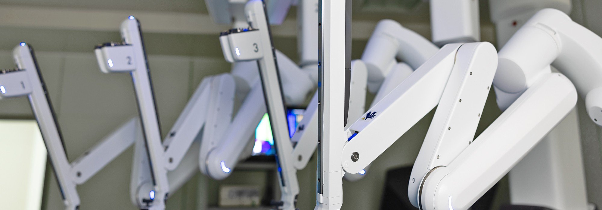 Seit April 2023 setzen wir zwei Operationsroboter der neuesten Generation (Da Vinci Xi und X) als Assistenzsystem für die Laparoskopie ein. Die roboter-assistierte Chirurgie hebt das Prinzip der laparoskopischen Chirurgie auf das höchste technische Maß, das derzeit zur Verfügung steht. Hierbei werden die Handbewegungen des Chirurgen durch vier robotische Arme umgesetzt, die die Steuerung chirurgischer Instrumente im Bauchraum in höchster Präzision ermöglichen. In Kombination mit der robotisch geführten, dreidimensionalen Kamera wird das Operationsfeld hochauflösend und in kompletter Ruhe dargestellt.