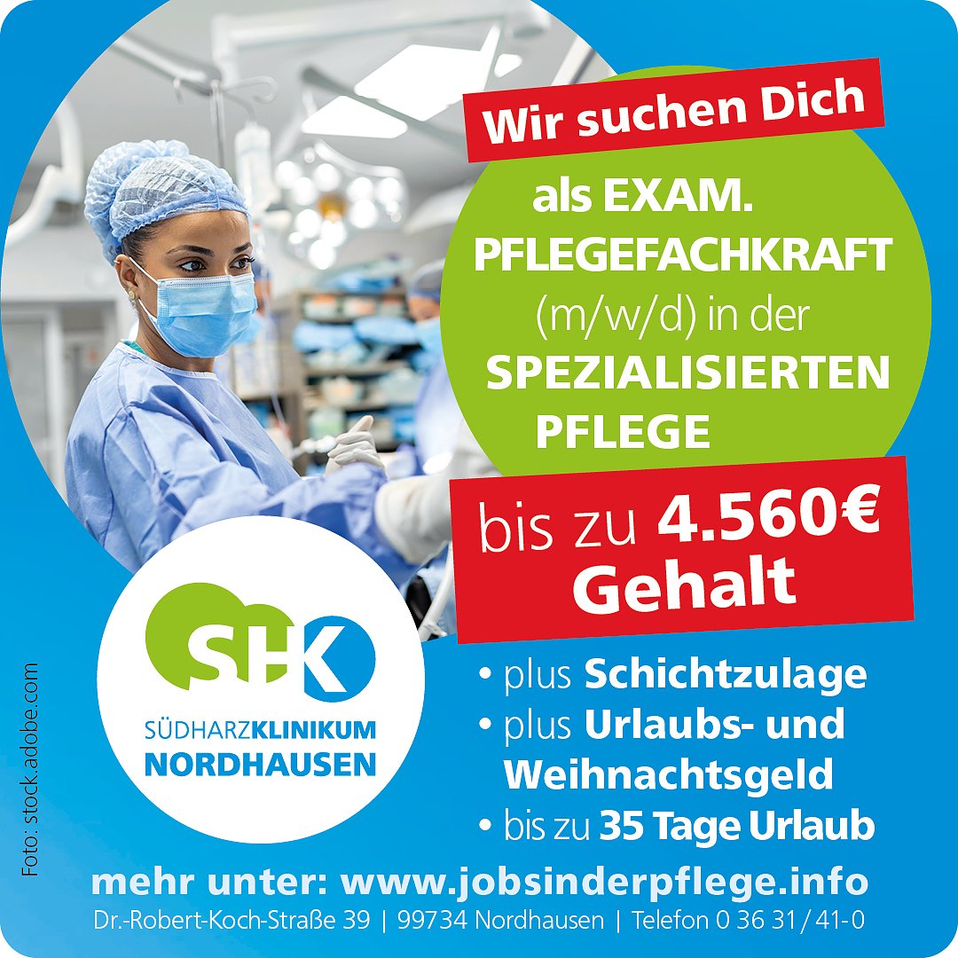 Die Südharz Klinikum Nordhausen gGmbH ist ein Krankenhaus der überregionalen Versorgung mit rund 800 Betten und 26 Fachabteilungen sowie modern ausgestatteten Funktionsbereichen und Instituten. Wir sind Akademisches Lehrkrankenhaus des Universitätsklinikums Jena.