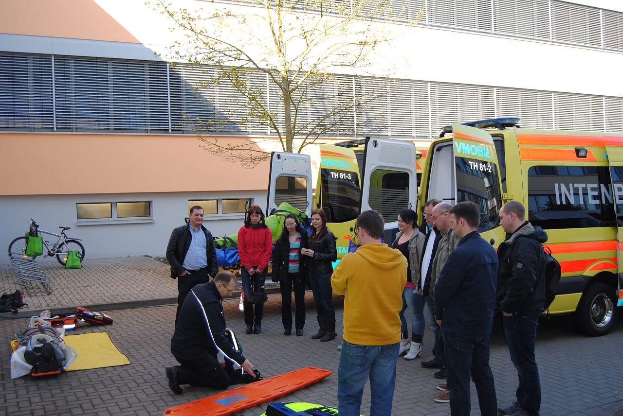 Am Vormittag wurden die Teilnehmer in einem ersten Themenblock vom Ärztlichen Leiter Rettungsdienst des Landkreises Nordhausen, Herrn Dipl.-Med. Hans-Jörg Arndt das Konzept des Landkreises Nordhausen bei einem Massenanfall von Verletzten vorgestellt. Anschließend informierte der Katastrophenschutzbeauftragte des Universitätsklinikums Jena, Herr Dr. med. Karsten Krohn, über die Vorbereitung seines Krankenhauses zur koordinierten Aufnahme einer großen Anzahl von Patienten im Rahmen einer Großschadenslage. Die Themenrunde wurde abgeschlossen von Herrn Tobias Mielke, dem Leiter der Rettungsleitstelle Nordhausen, der über die Möglichkeiten der Rettungsleitstelle berichtete, bei einer Großschadenslage die bestmögliche Versorgung der betroffenen Patienten zu ermöglichen, und gleichzeitig auch noch die Hilfeersuchen aus der Bevölkerung zeitnah bearbeiten zu können.