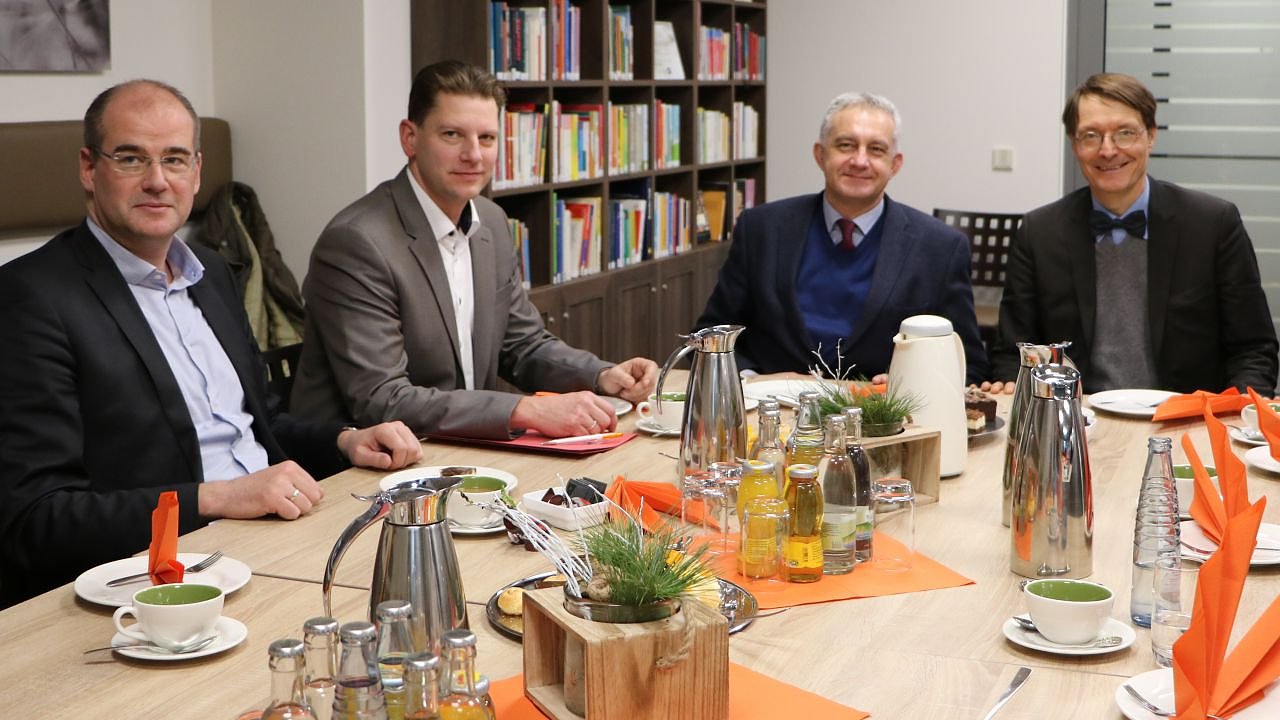 Zuvor besuchte der stellvertretende Vorsitzende der SPD-Bundestagsfraktion, Prof. Dr. Lauterbach zusammen mit Herrn Lemme (MdB) und Herrn Landrat Jendricke das Südharz Klinikum, wo sie vom Geschäftsführer Guido Hage empfangen wurden.