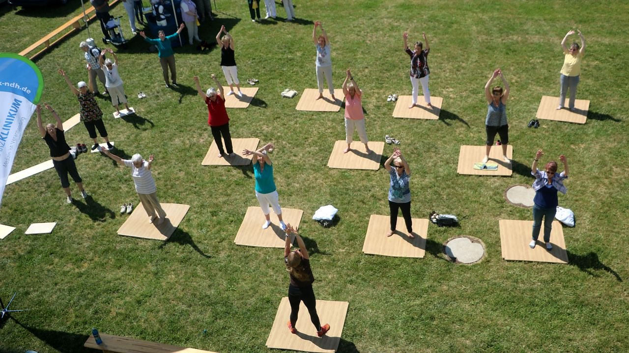 Es übten und tanzten mit den Gästen, unter ihnen viele Patienten des Klinikums, Physiotherapeuten sowie Gesundheitstrainer. Auf persönliche Einladung nahmen auch verschiedene Osteoporose-Selbsthilfegruppen beispielsweise aus Nordhausen, Bad Frankenhausen, Sondershausen, Ilfeld oder Bleicherode, mit Begeisterung an der Open Air Veranstaltung bei herrlichstem Wetter teil.