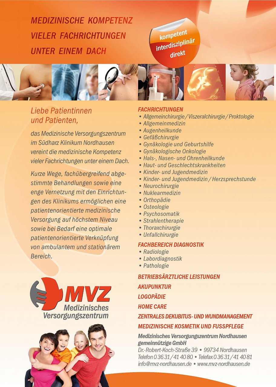 Vor 17 Jahren, Anfang 2004, wurde das Medizinische Versorgungszentrum (MVZ) in unserem Klinikum in Betrieb genommen. Seitdem hat sich unser MVZ kontinuierlich entwickelt und ist aus der medizinischen ambulanten Infrastruktur des Landkreises Nordhausen sowie darüber hinaus nicht mehr wegzudenken”, konstatiert die zuständige Koordinatorin Nane Schwartz.