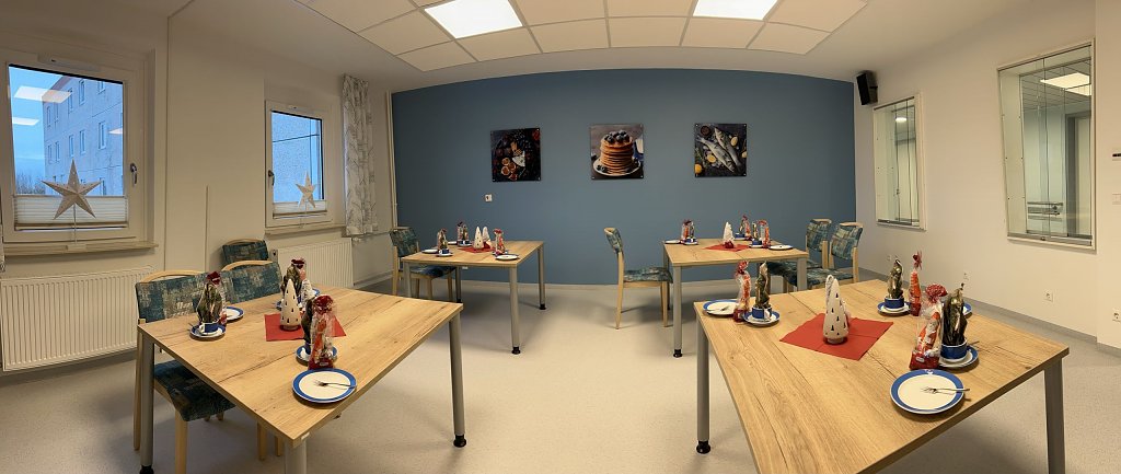 Die Freude bei Bewohnern und Mitarbeitern war groß. Die hellen, freundlichen Räume wurden mit modernen Küchen ausgestattet und je nach Bereich in verschiedenen Farben sehr wohnlich gestaltet. Sie bieten genug Platz für gemeinsame Beschäftigungen, vor allem natürlich zum Kochen, Backen und für gemeinsame Mahlzeiten.