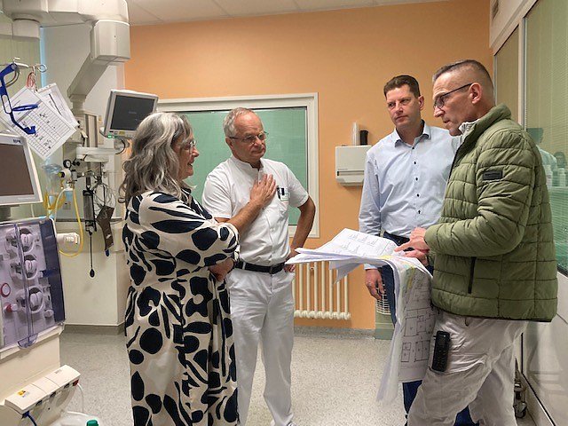 In weiteren Gesprächen machte Hage unter anderem auf die erforderlichen Rahmenbedingungen aufmerksam, die sich aus der Notwendigkeit einer zunehmenden Digitalisierung des Gesundheitswesens ergeben. Vor allem die technische Infrastruktur müsse dringend erneuert und erweitert werden. So seien zum Beispiel wichtige bauliche Komponenten des Klinikums rund 30 Jahre alt. Das Bettenhaus 2 wurde vor fast 25 Jahren gebaut und eingeweiht. Guido Hage machte deutlich, dass in den nächsten Jahren seitens des Landes vor allem in den Bestand investiert werden müsse, als in den Neubau von Kliniken.
