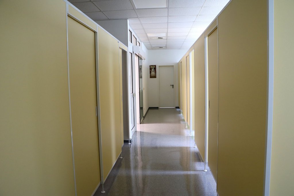 Inhaltlich hat sich bezüglich Gesamtbehandlungsspektrum des Zentrums nach dem Umbau eine Optimierung zugunsten der rehabilitativen Anwendungen ergeben. So haben wir zwei zusätzliche physiotherapeutische Arbeitskabinen geschaffen. Mit der Gestaltung der neuen Arbeitsplätze wird den Anforderungen an eine moderne klinische Einrichtung Rechnung getragen und zwischen den Behandlungsplätzen sorgen formschöne Wände für den nötigen Sicht- und Lärmschutz bei den Behandlungen.